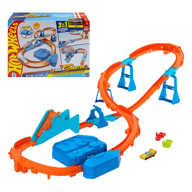 Build, race, and stunt! Kids can choose from three track layouts or create their own, then watch the motorized booster send cars flying through their tracks.
