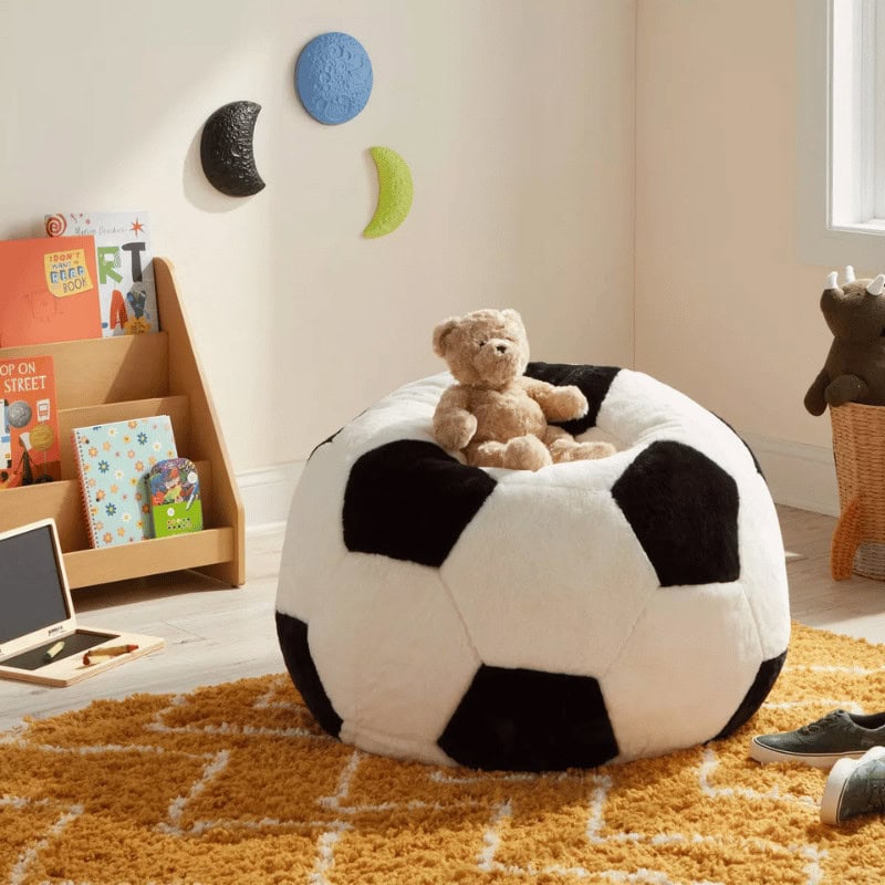 A cozy, sporty bean bag chair available in basketball, soccer, baseball, and football designs. Perfect for reading, lounging, and game-day hangs.