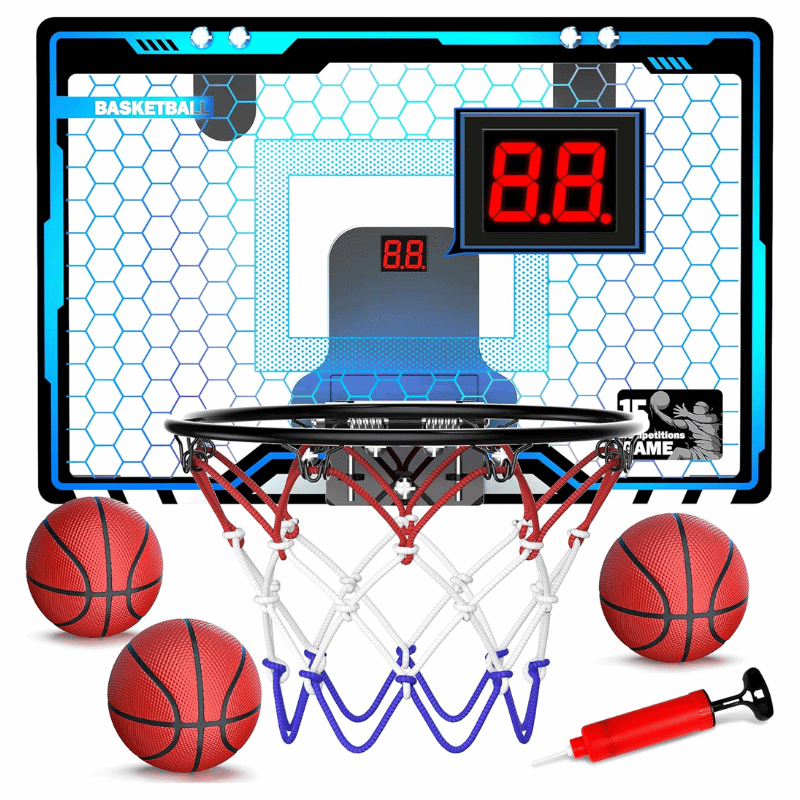 This light-up mini hoop brings court vibes indoors! Features electronic scoring, cheering sounds, and multiple game modes.