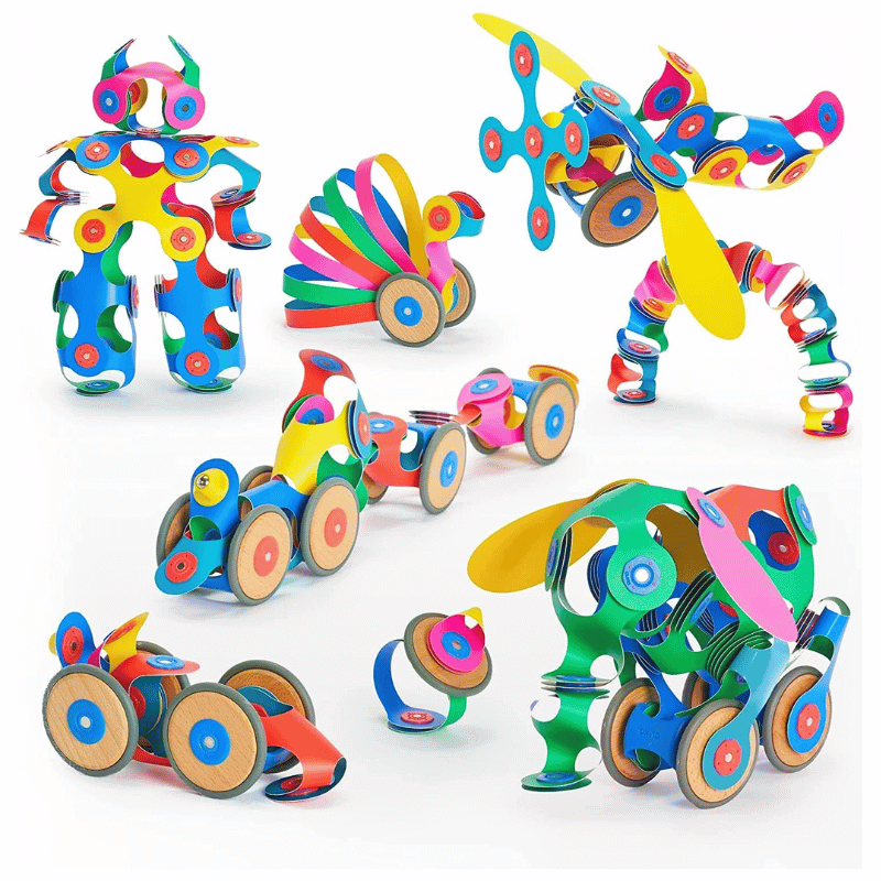 A flexible magnetic building toy for endless creativity. Kids can bend, snap, and fold pieces into 3D builds—animals, vehicles, abstract art, and more.