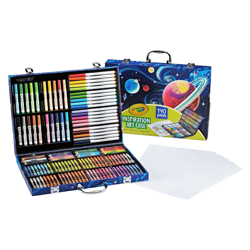 This art kit comes with 140 supplies—markers, crayons, colored pencils, and paper—all tucked inside a sturdy case that doubles as a lap desk. Perfect for a little artist!