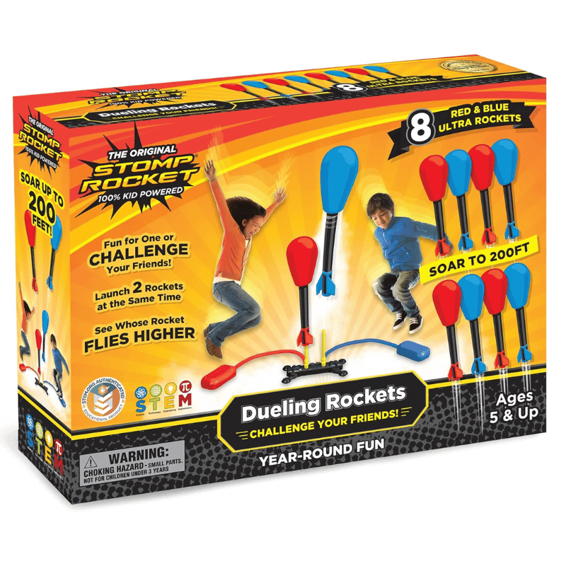 Ready, set, stomp! Two kids can launch rockets at once, sending them soaring up to 200 feet. Perfect for friendly competitions.