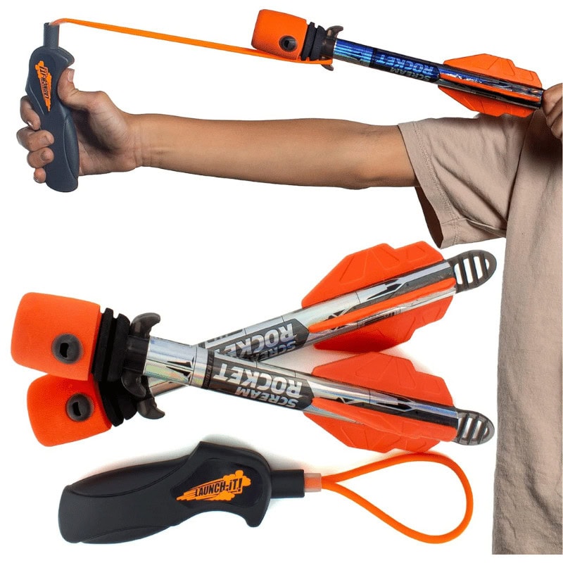 Launch this slingshot rocket up to 250 feet and listen to it whistle as it soars! Easy enough for beginners but exciting for all ages.