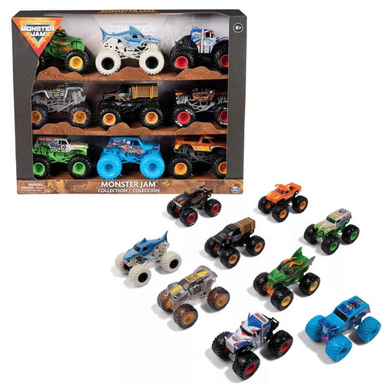 This ultimate Monster Jam set features nine iconic trucks, making it perfect for kids who love action-packed play!