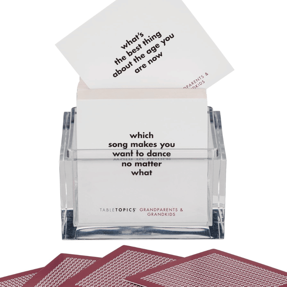 TableTopics for Grandparents is the gift of great conversations! With thoughtful and playful prompts, these cards spark stories, laughter, and connection—helping grandparents and grandkids bond across generations.