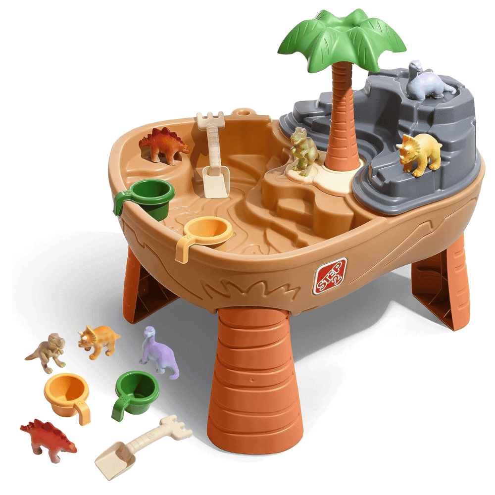 Do you have a little paleontologist at home? Perfect for digging for dinosaur bones, this dino sand and water table has two sides of sensory play and comes with a 7-piece accessory set, including a double-sided rake and shovel.