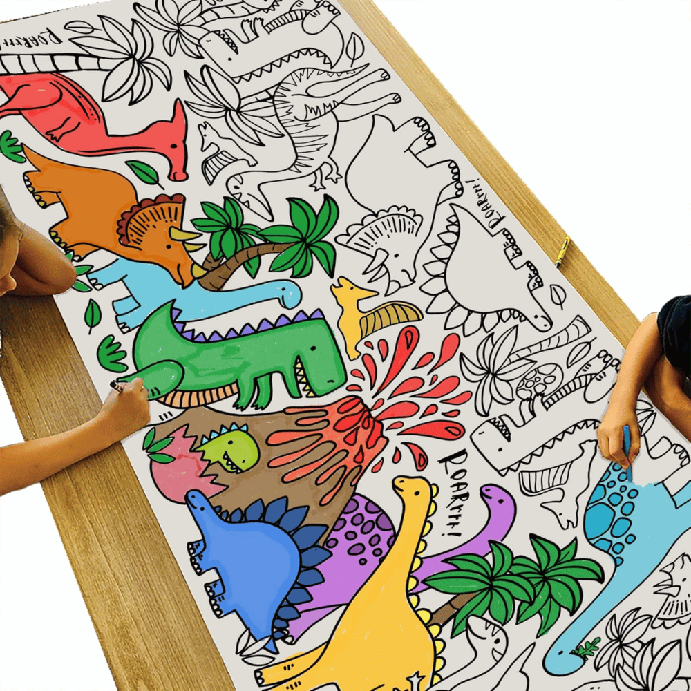Unroll gigantic dinosaur fun ! This oversized poster is packed with adorable dino details, ready for little artists to bring to life. Perfect for solo creativity or group coloring fun, it’s great for playdates, classrooms, or family time. Hang it up when you’re done to bring your prehistoric scene to life.