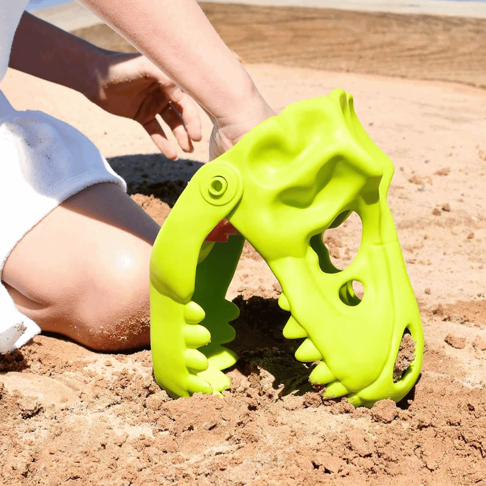 Your paleontologist will find several ways to use their new dino-shaped sand glove! Take a bite out of the sand (dirt and snow, too!), or bury the head and use excavating tools to dig it out.
