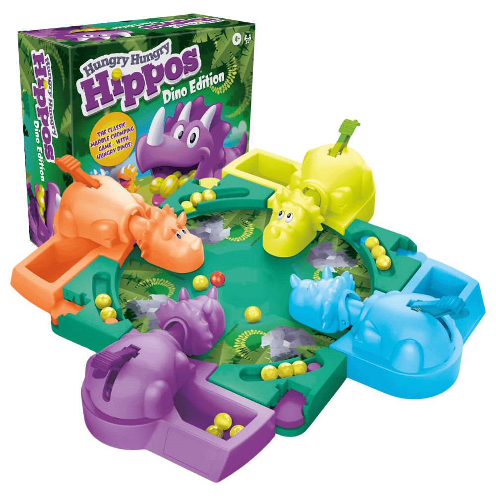 Move over hippos! Your childhood favorite game has gotten a T-rex takeover! It still has all the chomping fun of the original, but the hungry hippos have been replaced with dinosaurs ready to devour the marbles.