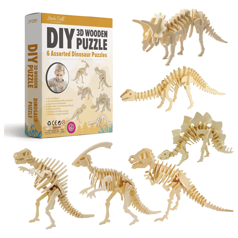 No tools or glue are required! Build six dinosaurs by following the step-by-step instructions in this DIY 3D Wooden Puzzle.