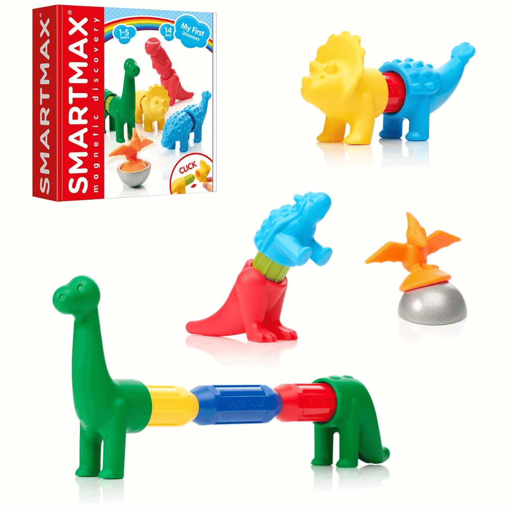 With this magnetic dinosaur building set, your toddler can build five dinosaurs or mix and match for crazy Jurassic creations, all the while learning about magnetism, color matching, animal recognition, and stacking.