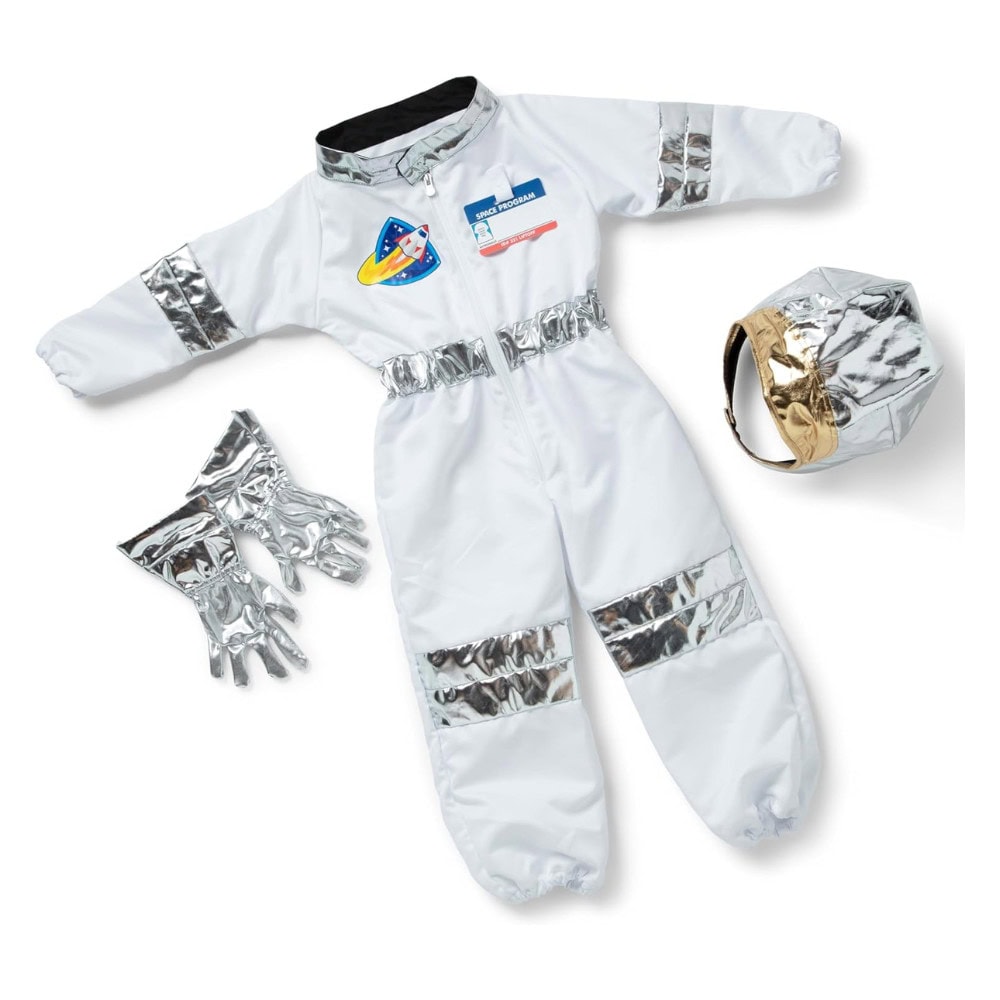 Your little astronaut will be over the moon when they step into this astronaut jumpsuit, slip on the stretchy silver gloves, and place on their shiny space helmet! There’s even a reusable name tag that proudly IDs your little space explorer.