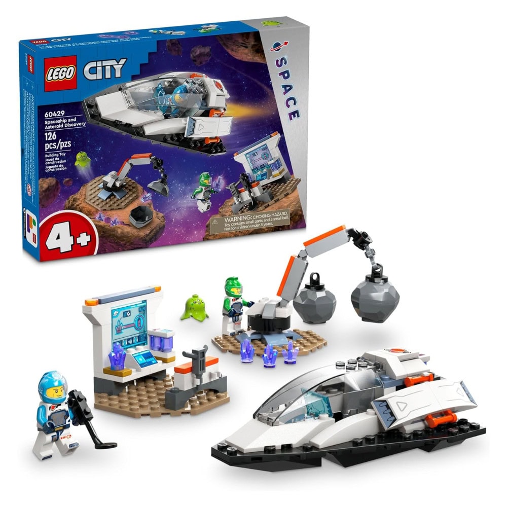 Have a galactic adventure with the LEGO City Spaceship and Asteroid Discovery set! Kids will build a cool spaceship, uncover crystals in meteors, and meet an alien friend. Includes space crew minifigures and tools for some interstellar fun!
